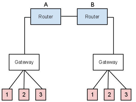 A의 1과 B의 2는 Gateway를 통하지 않고는 데이터 교환이 불가능