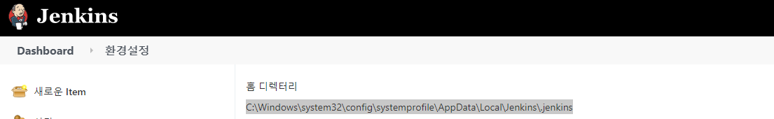 첫 번째 단계에서 봤던 초기 기본 경로(C:\Windows\system32\config\systemprofile\AppData\Local\jenkins)