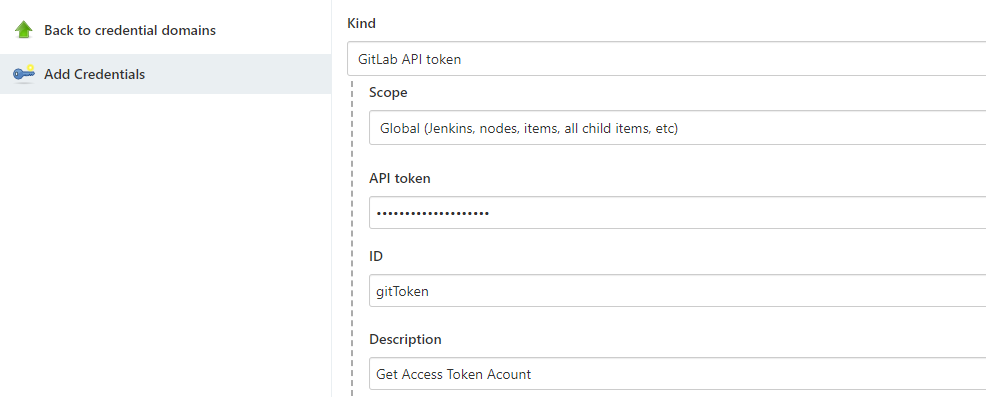 Kind를 GitLab API token으로 바꾸고, 발급받았던 깃 토큰을 입력하고 저장.
